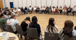 In a talking circle, participants sit together in a circle to emphasize unity and equality—no one is placed above or below another. A symbolic item, often referred to as a talking piece (such as a feather, stone, or handmade item), is passed around. Whoever holds the talking piece has the opportunity to speak, while others listen without interrupting, judging, or planning a response. At the Inter-Tribal Gathering, a talking stick was used to give each participant the space and opportunity to share. Participants were then welcomed to share as much or as little as they wanted, ensuring that each and every voice was heard and included.